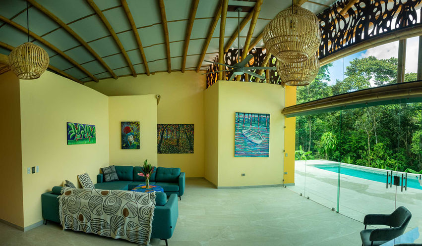 This stunning modern-style residence, distinguished by its creative use of bamboo, offers a rare living experience where elegance meets the serenity of the Costa Rican jungle. Surrounded by lush conservation land, the property provides a true nature retreat with the daily company of exotic birds, playful monkeys, and vibrant wildlife.
